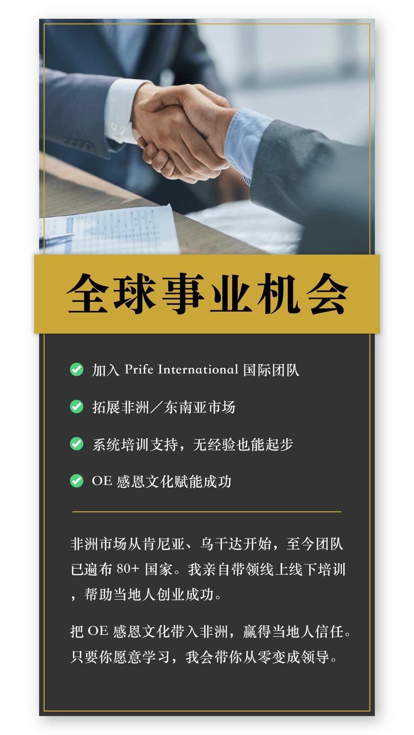 Gordon 带着团队亲自来到我们国家,不只是带来产品,而是带来希望。他教我们的不仅是事业,而是一种感恩的文化,让我人生第一次感受到被尊重、被点燃。我现在是本地团队领导,正在带更多人走上转变之路。